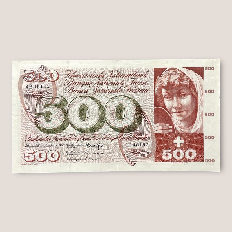 Schweiz, 500 Francs 1967 Banknote Knackige, leicht zirkulierte Banknote ohne Risse, knackiges Papier, leuchtende Farben, XF Inv: 5998D251N128