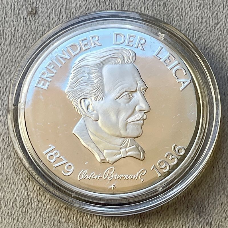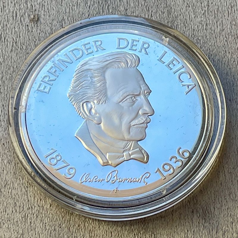 Leica, sterling silver Medal with M4-P camera and Founder's bust 31.75 grams; 925 Silver Inv: G25107
