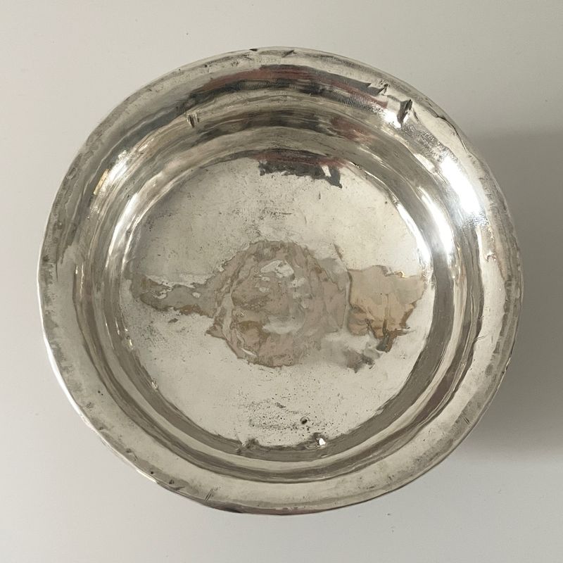 Tibetan footed Silver lined Burl timber ceremonial tea bowl. Late 19th, early 20th century. 124 grams; 11 cm in diameter Inv: G268