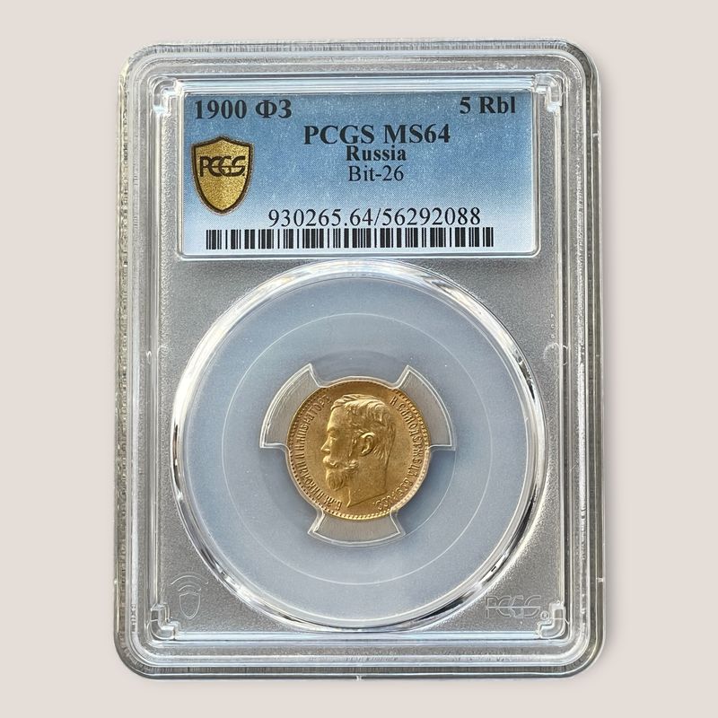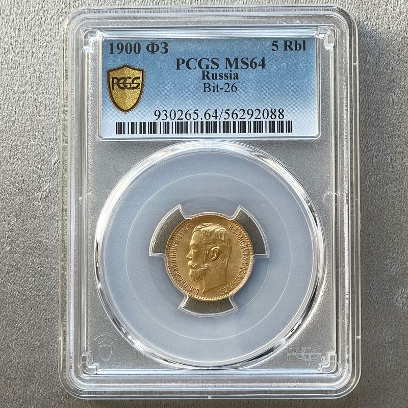 Russian Empire, Nicholas II, 5 Roubles 1900, PCGS MS64. A coin of outstanding quality. Pristine fields and mint luster. Bitkin 26; Conros 20/9 Inv: G26104