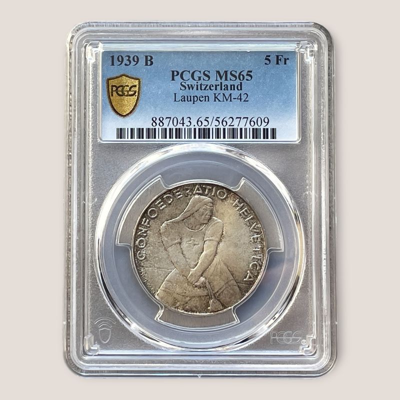 Switzerland, 5 Francs Laupen, 1939B, PCGS MS65 KM-42 Inv: G26105