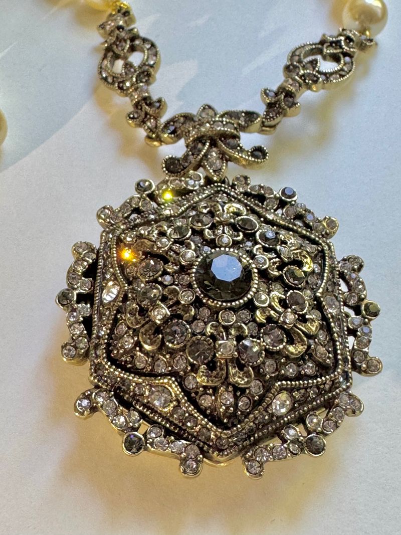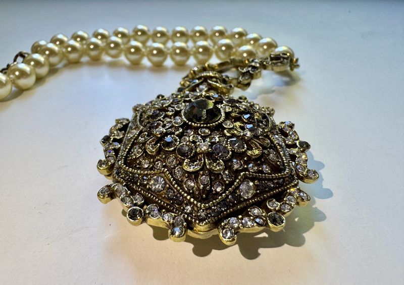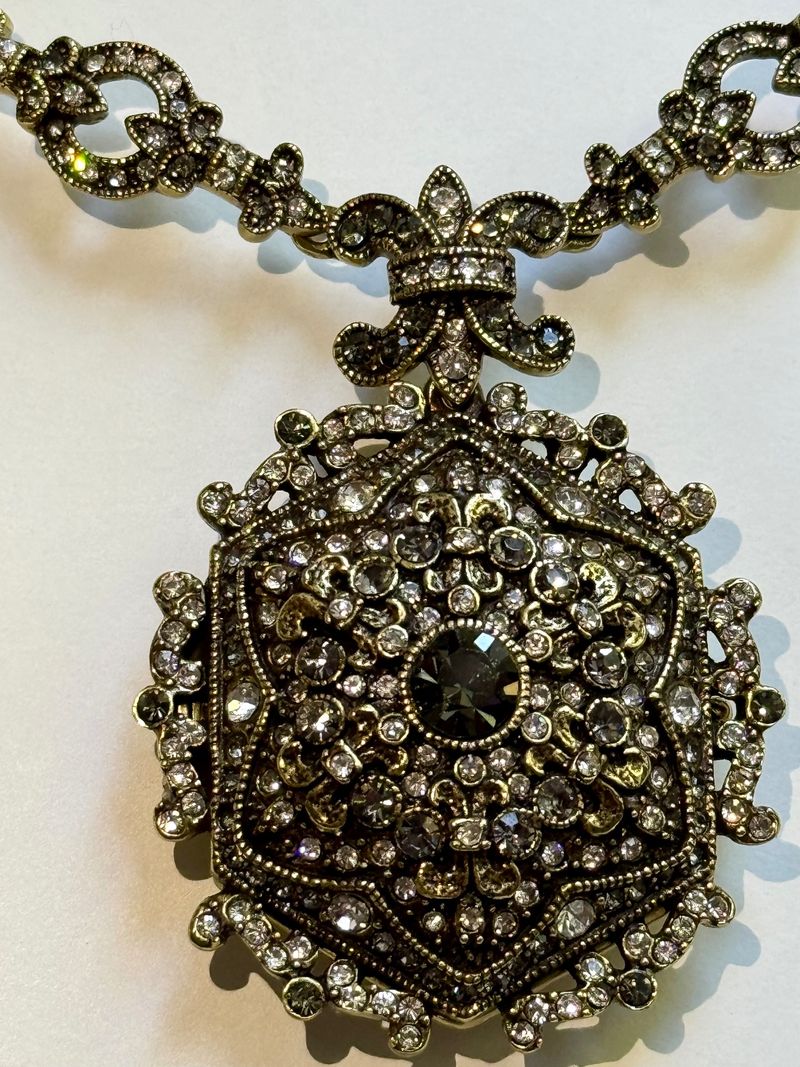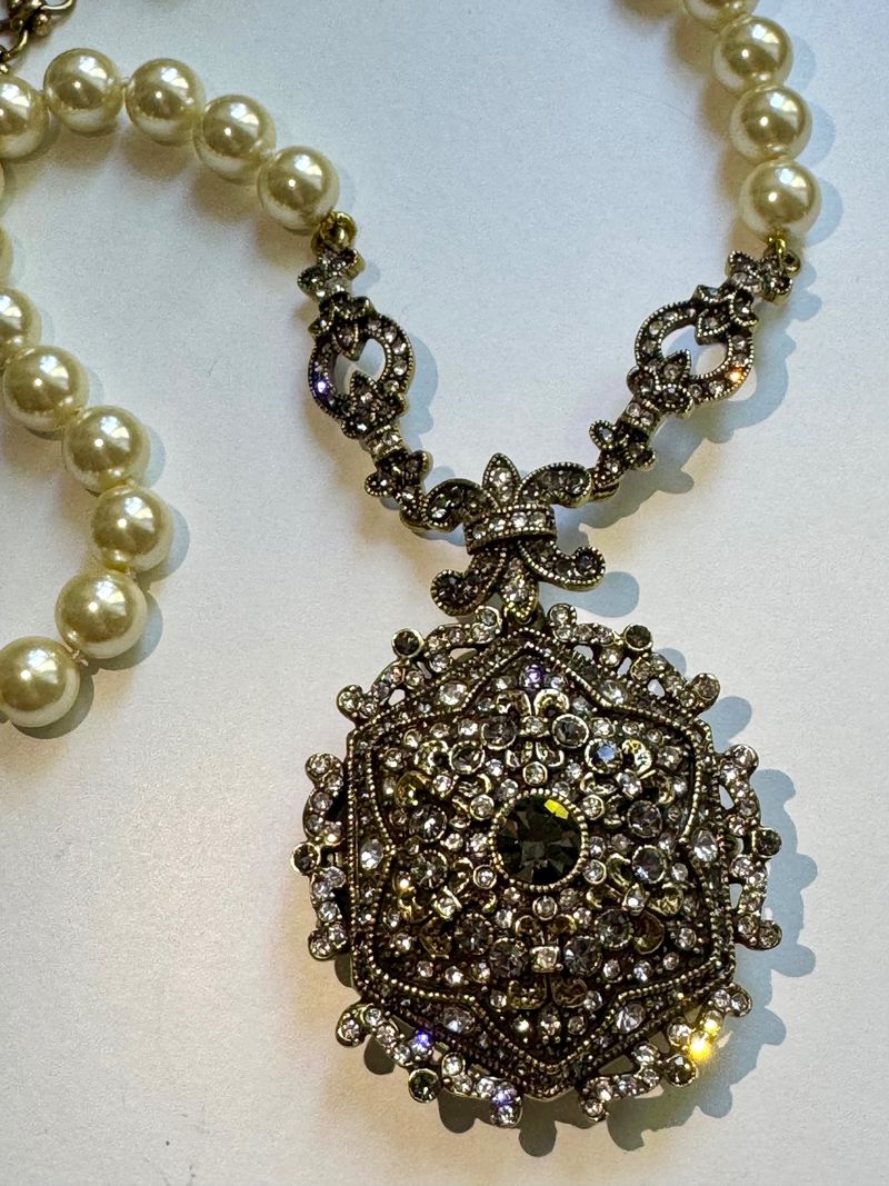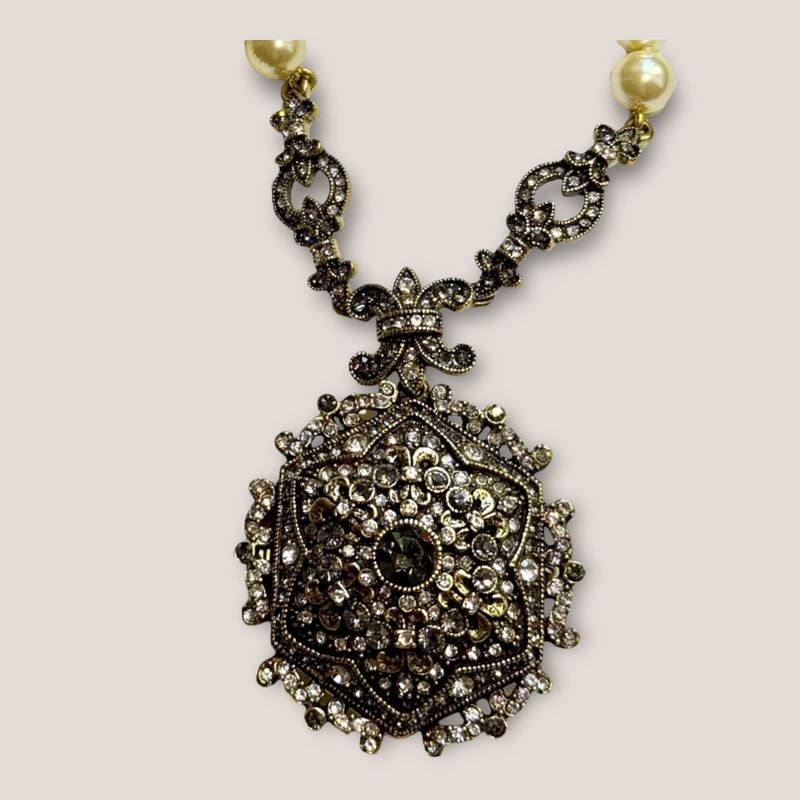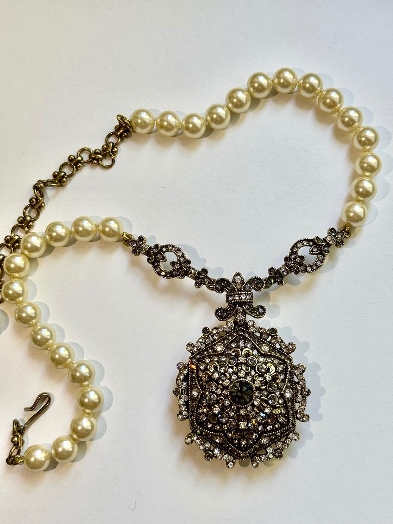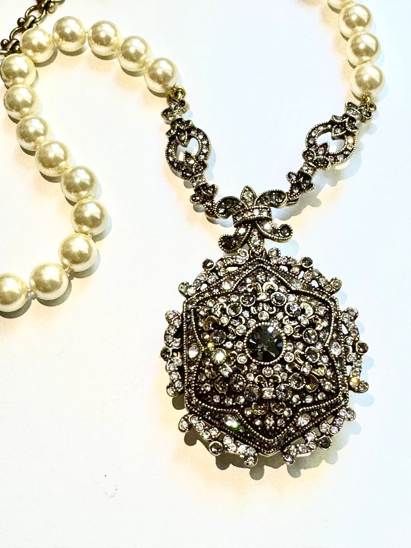 Créatrice américaine s Heidi Daus authentique locket Unforgettable Lavalliere collier. Cristaux Swarovski et perles simulées.