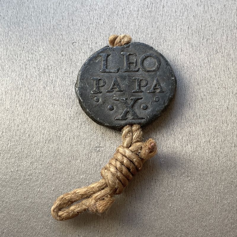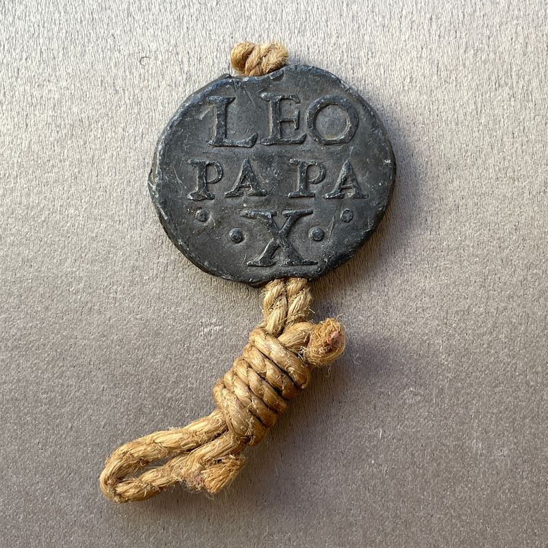 Italie, Vatican. Léon X, 1513-1521. Bulle papale en plomb. Rare état avec encore sa cordelette d'origine. Inv : G25112