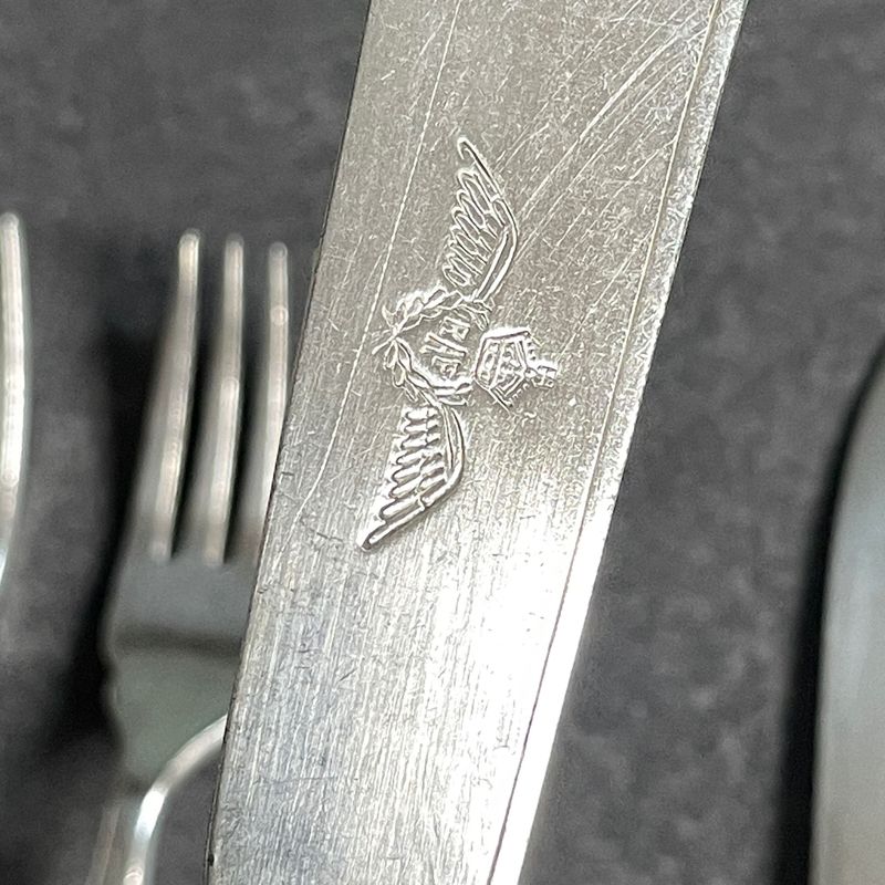 Magnifique ensemble de couverts, datant des années 1930, utilisés dans la cantine des officiers.