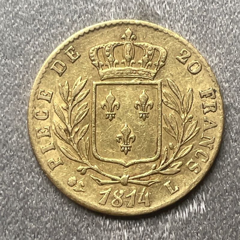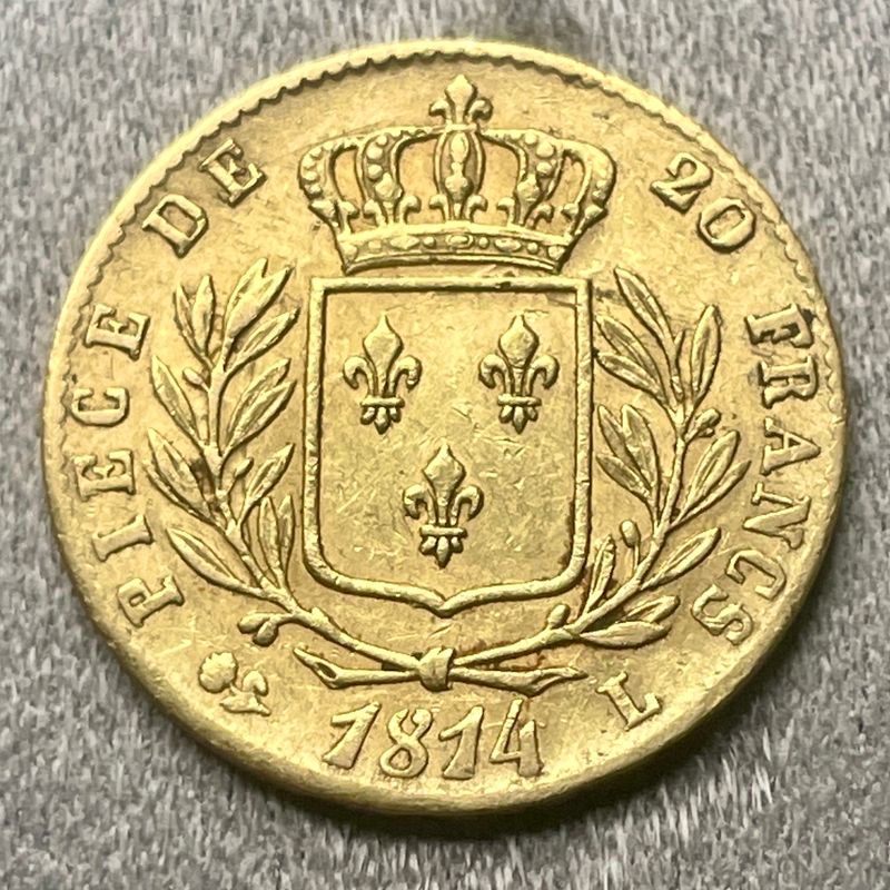 France. Louis XVIII. 20 Francs 1814 L Bayonne Rare, seulement 44883 pièces frappées Une belle pièce sans problème 6,42 grammes Inv : G2625 g