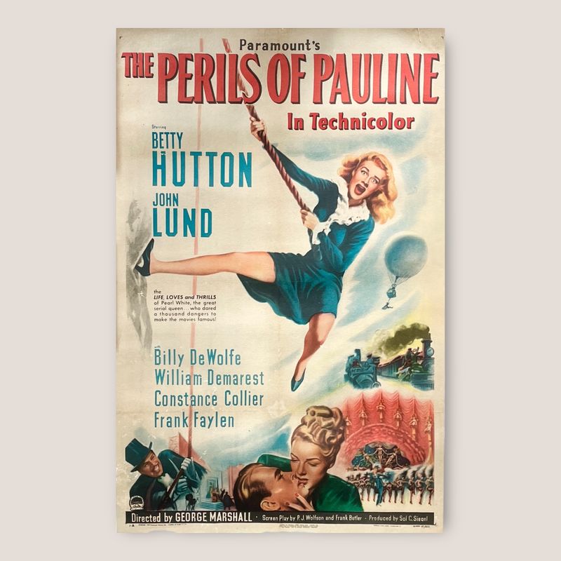 Les périls de Pauline, affiche originale du film de 1947. Betty Hutton, John Lund. Dos en lin. 104.5x68.5 cm (affiche) ; 107x72cm (toile) Inv : G2655
