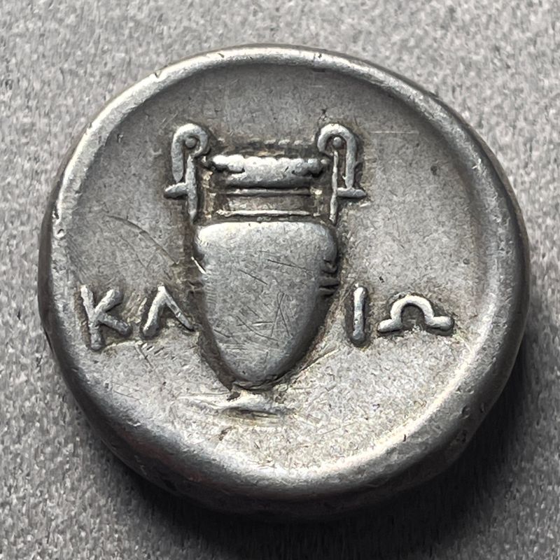Mondes grecs, Béotie Thèbes. 368-364 AV. Stère d'argent. Magistrat Klio(n) Belle pièce en excellent état, bien cantonnée et bien frappée. Provenant d'une ancienne collection suisse, acquise dans les années 1970. 12,0 grammes. BCD 531 Inv: G2669