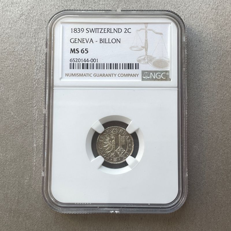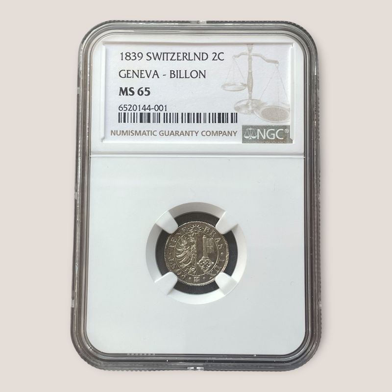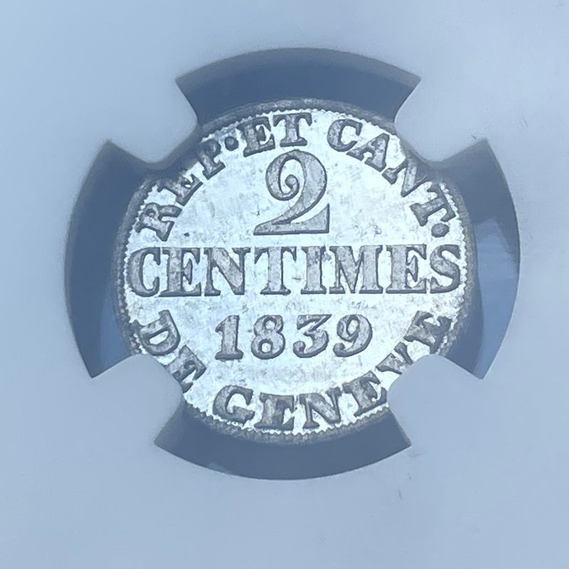 Suisse, Genève. 2 Centimes 1839. NGC MS65. Condition exceptionnelle pour le type. Inv : G26115