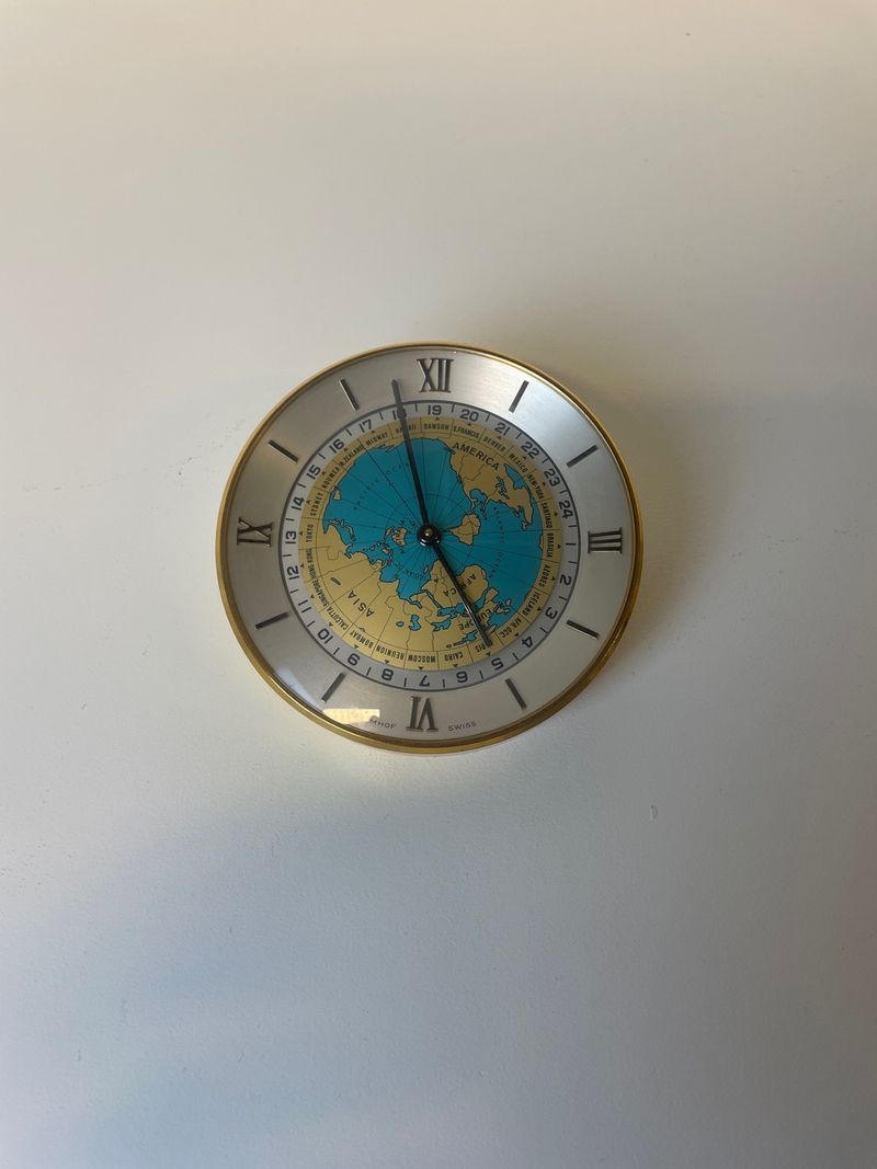 A very nice table clock with a world map by Imhof, circa 1960's 10.7 cm in diameter.