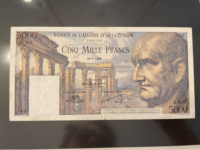 Algeria and Tunisia 5000 francs 1952 banknote Beautiful banknote in very good condition for the type
