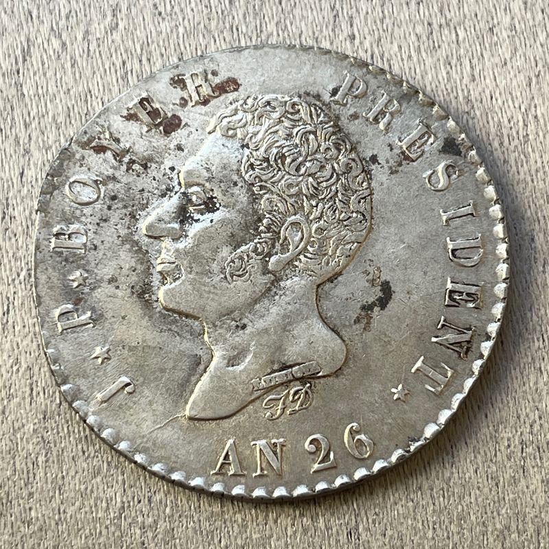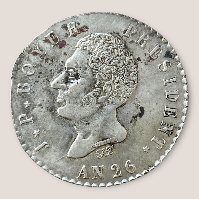 Haiti,First Republic 1825-1849, 100 Centimes AN 26 (1829) About uncirculated KM A23 9.84 grams Inv: G25110