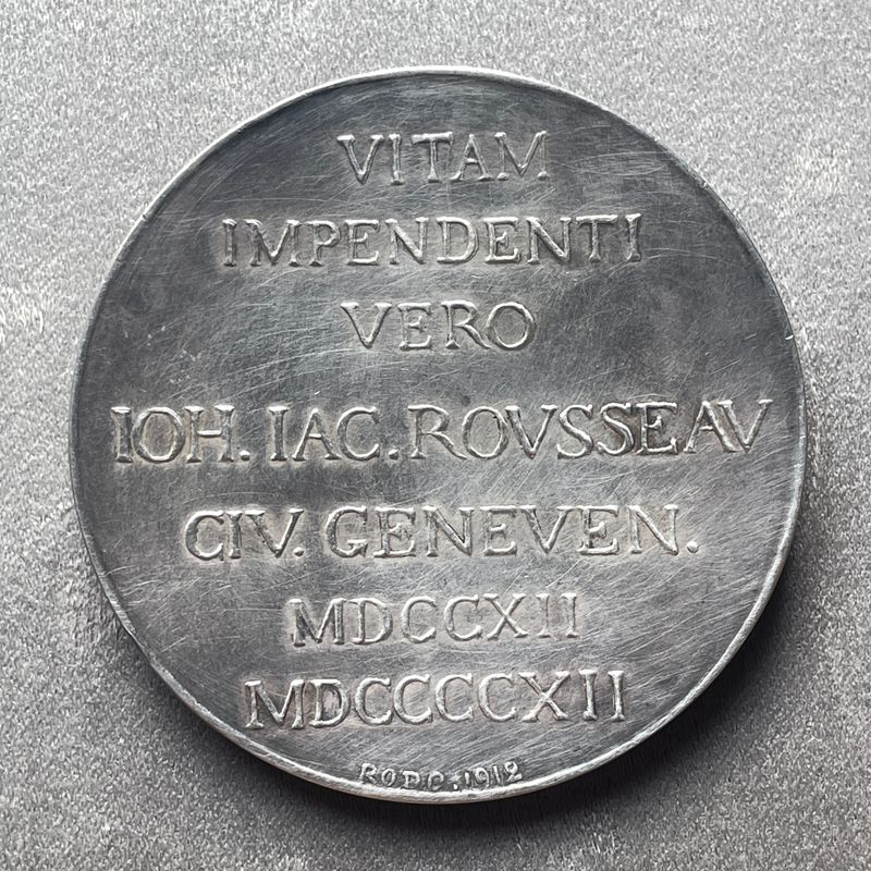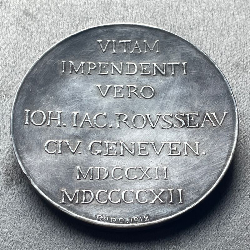 Switzerland, Geneva, Rousseau 200th anniversary large silver medal by Rodo, 1912 Rare in Silver 57mm; 109.35 grams INV: G25123