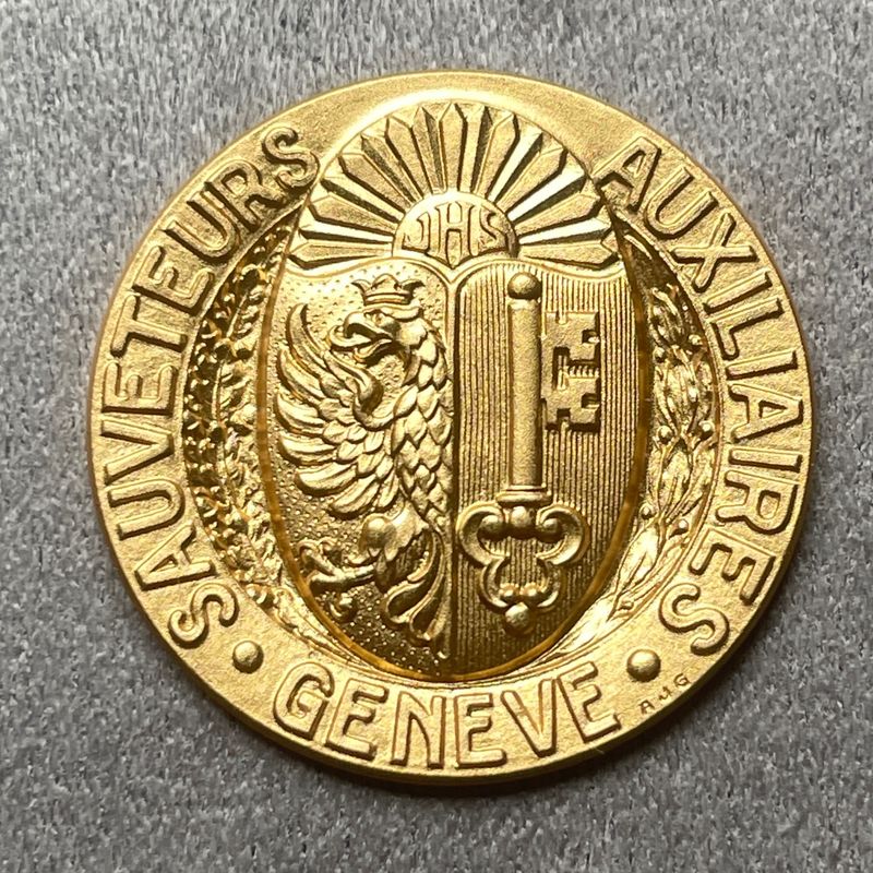 Excessively RARE Geneva gold medal SAUVETEURS AUXILIAIRES