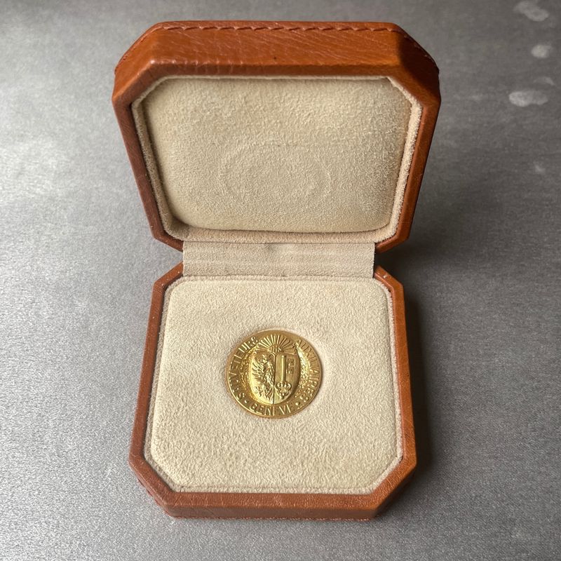 Excessively RARE Geneva gold medal SAUVETEURS AUXILIAIRES By Jacot Guillarmod and Huguenin In its original case of issue. 750 gold; 8.06 grams Inv: G267