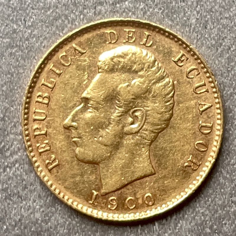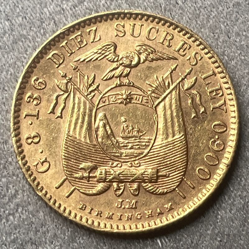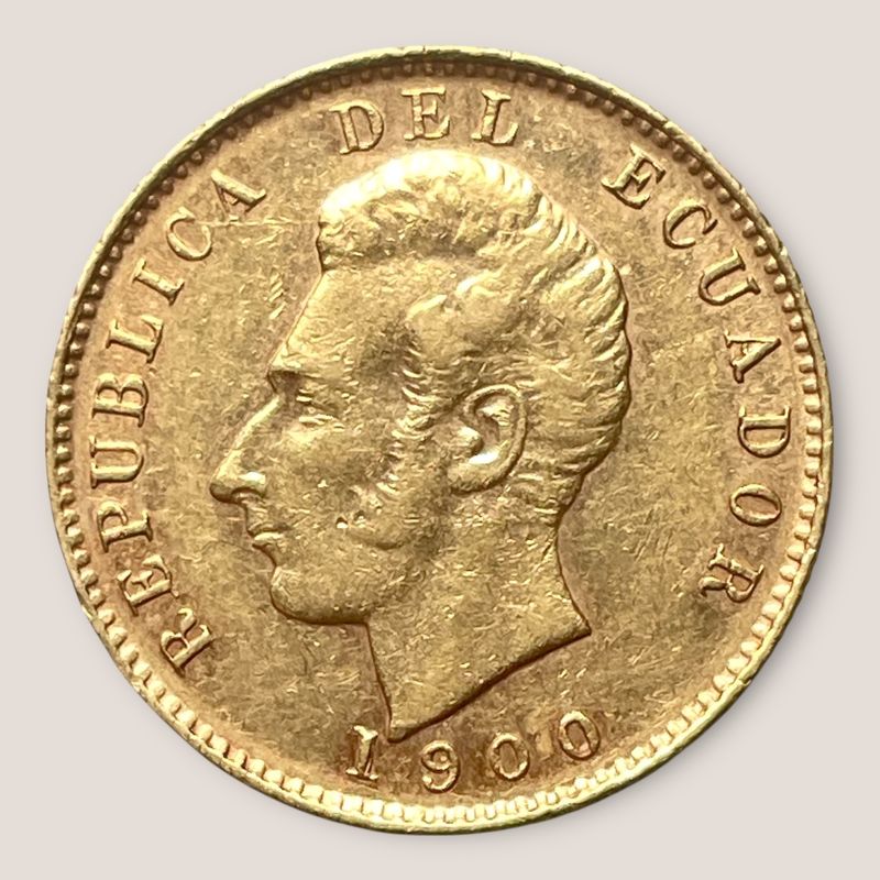 ECUADOR. Republic, 1830-. 10 Sucres 1900 JM, Birmingham KM 56; Fr. 10. AU. 8.12 g. XF-AU Inv: G2618