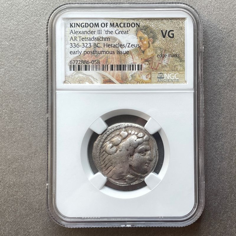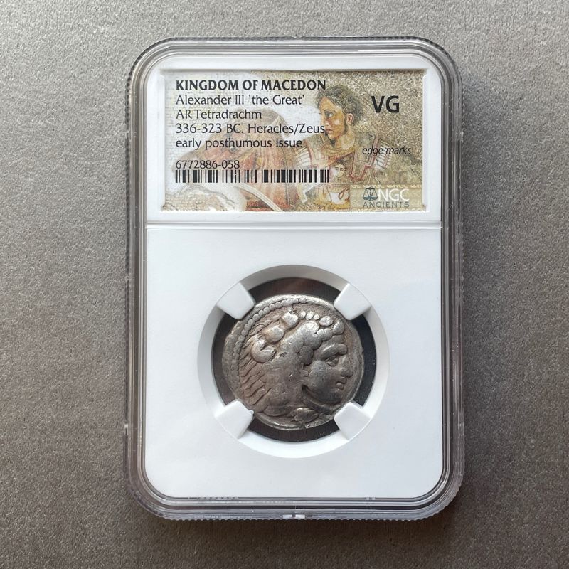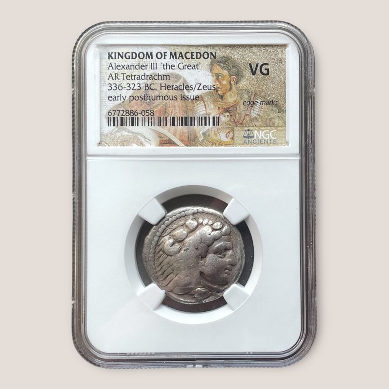 Kingdom of Macedon. Alexander III "The Great" Silver tetradrachm. 336-323 BC. Early posthumous issue. A very nice well struck and well centered coin, with great details for the grade. NGC VG Inv: G2629