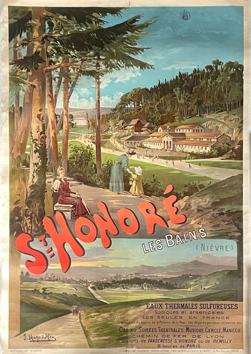 Rare Antique Poster St Honoré les Bains, circa 1900 By Frederic Hugo d'Alési Mounted on canvas 72x107 cm; canvas 78x114 Inv: G2651