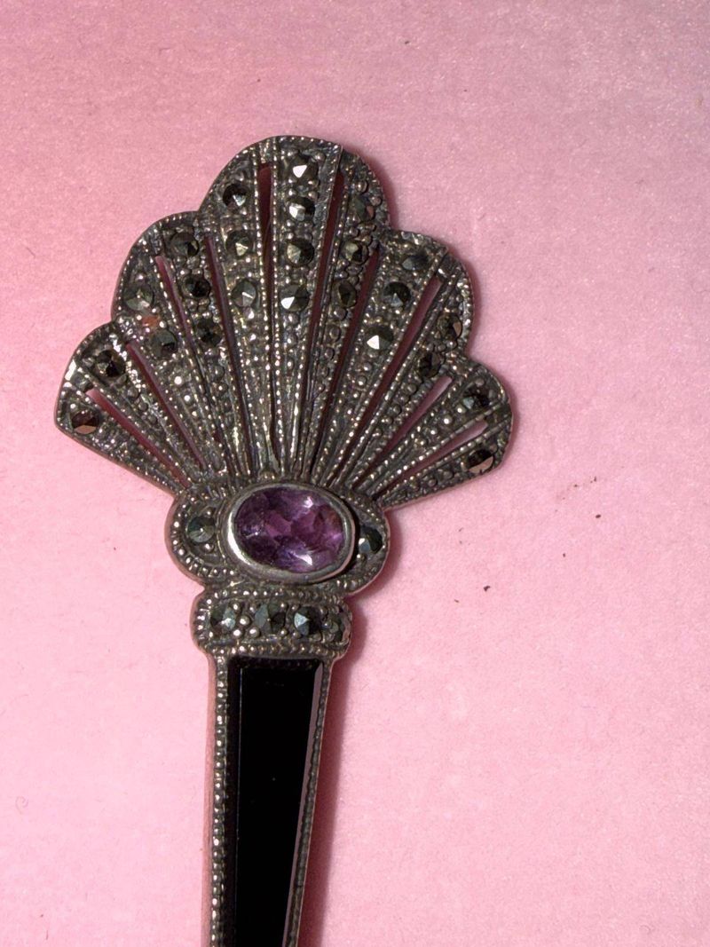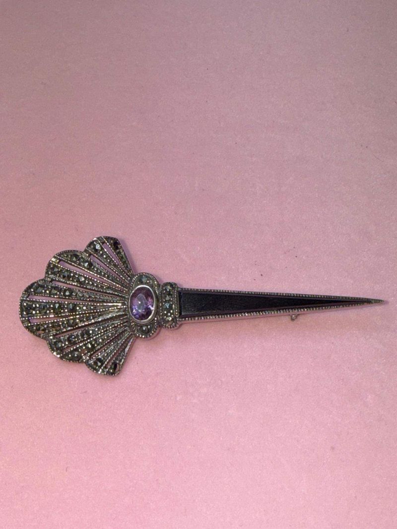 Art Deco brooch (silver, amethyst, onyx, marcasites)