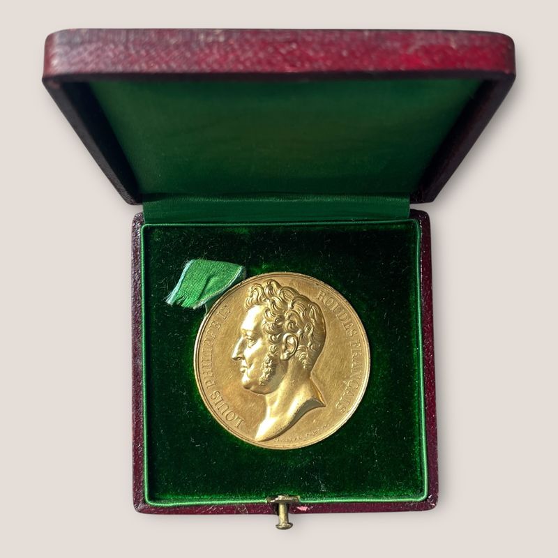 France, Louis Philippe, 1831 Salon medal attributed to sculptor Jean-Pierre Dantan, unique. 34.26 grams. Jean-Pierre Dantan was a French sculptor and caricaturist whose early career was shaped by his participation in the prestigious annual exhibitions of the French art establishment. At the Paris Salon of 1831, Dantan received a second-prize medal, a significant recognition for a young sculptor seeking to establish himself within the competitive academic art world of nineteenth-century France. The award acknowledged the technical skill and expressive quality of his sculptural work, helping to elevate his reputation among critics and patrons in Paris. This early institutional recognition contributed to Dantan’s growing prominence and supported his transition from a promising student into a professional artist, laying the groundwork for the career that would later make him famous for both refined portrait sculpture and satirical caricature busts of leading cultural figures. G2662
