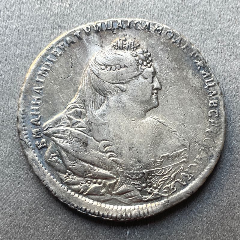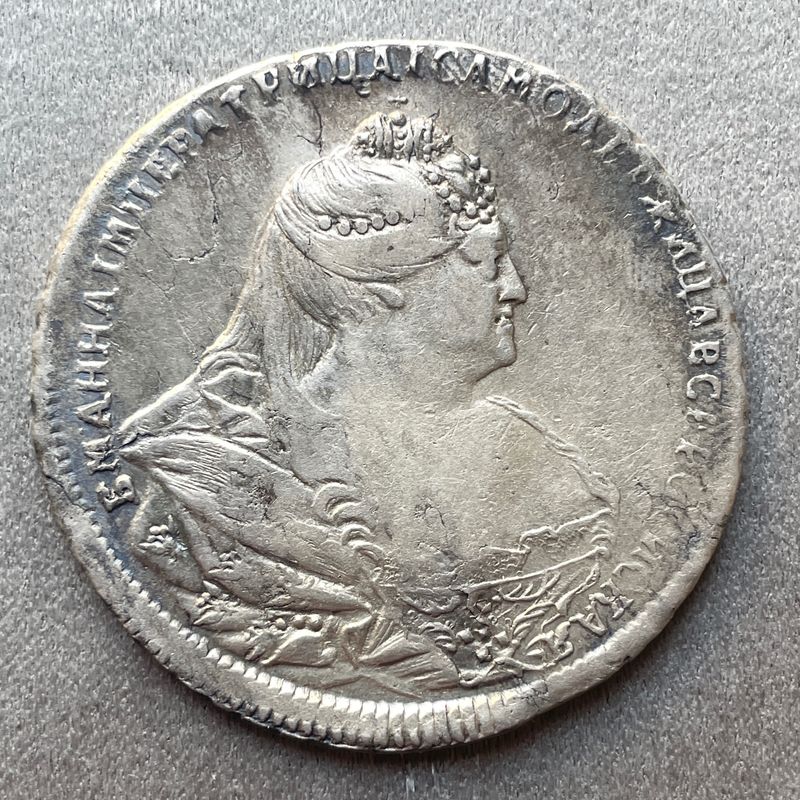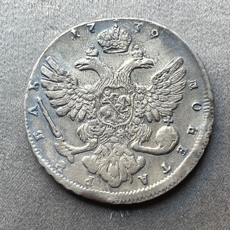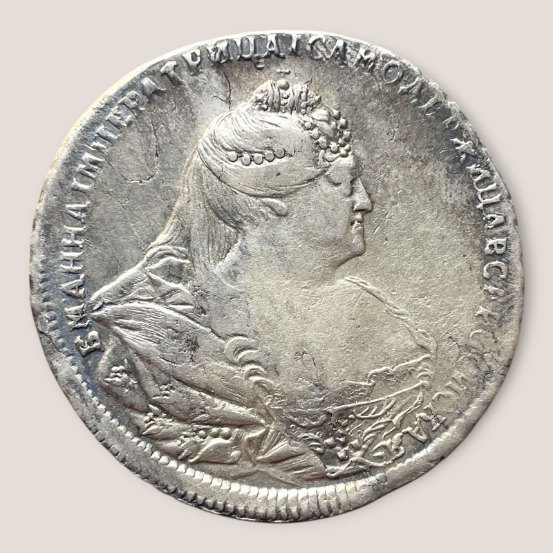 Russia, Anna Ioannovna, Rouble, 1739, Moscow type, 6 Pearls, Rare Silver. Edge patterned Nice coin, extremely fine. 26.15 grams Bitkin 206 (R1) Petrov 2,5 Rub Inv: G26136
