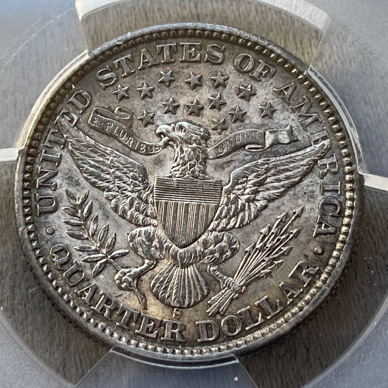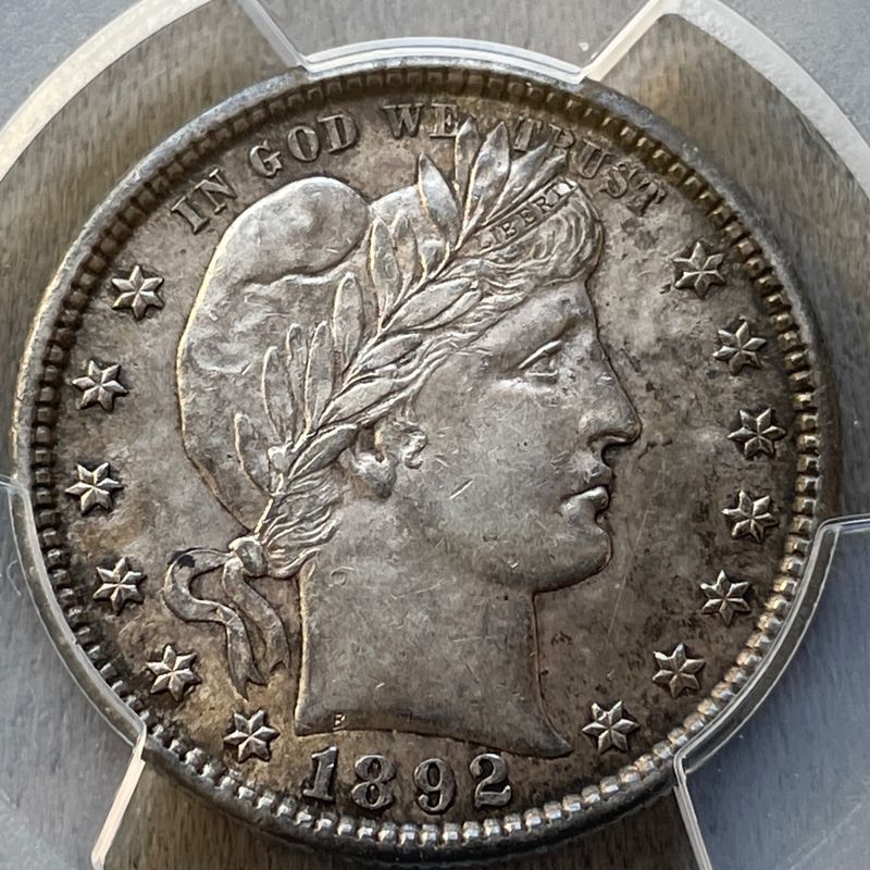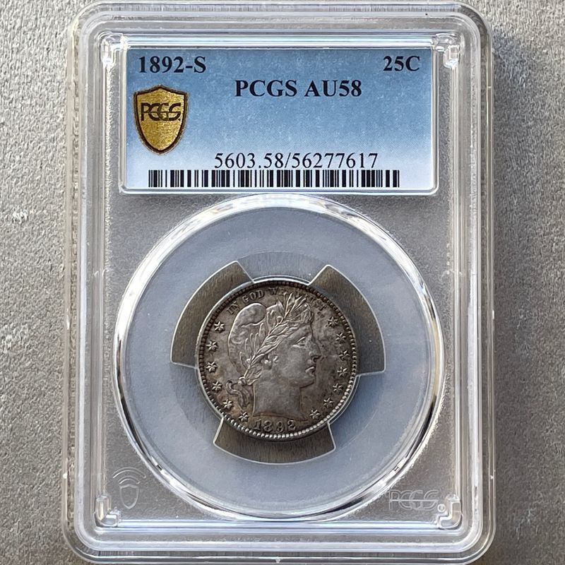 USA. 1/4 dollar or 25 cents 1892S Barber PCGS AU58.