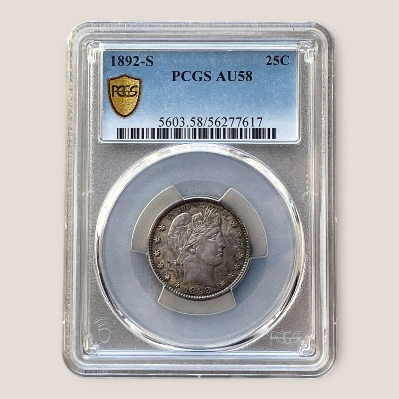 USA. 1/4 dollar or 25 cents 1892S Barber PCGS AU58. RARE date Amazing eye appeal for the assigned grade, appears uncirculated Inv: G26108