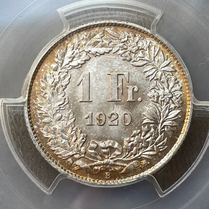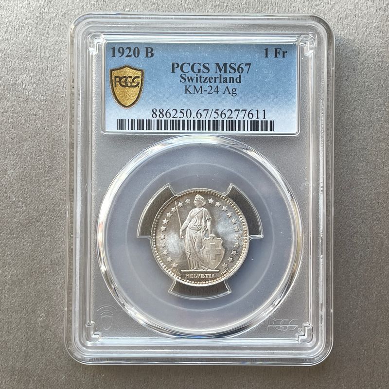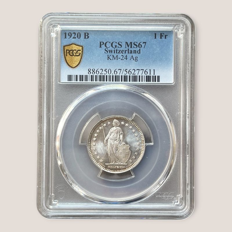 Switzerland, 1 Franc 1920, PCGS MS67 Exceptional condition for the type. Inv: G26116