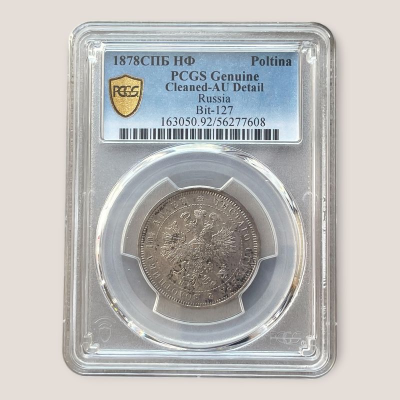 Russia. Poltina 1878. PCGS AU Detail Cleaned Russia, Alexander II, Poltina or 50 Kopecks 1878 СПБ-НФ. 868 Silver 10,25 grams, 28,50 mm diameter. 778 006 pieces struck Bitkin 127. Petrov 1 rub. Konros 119/32. Inv: G26113